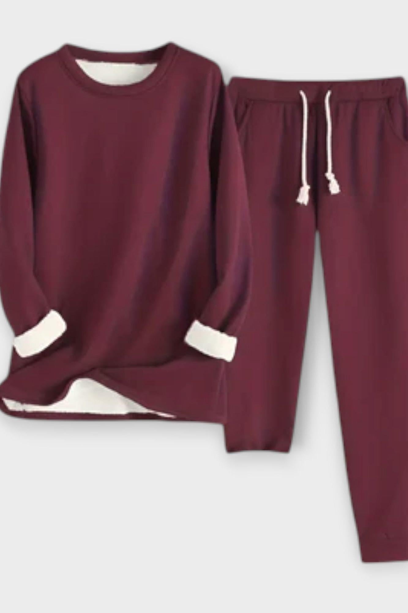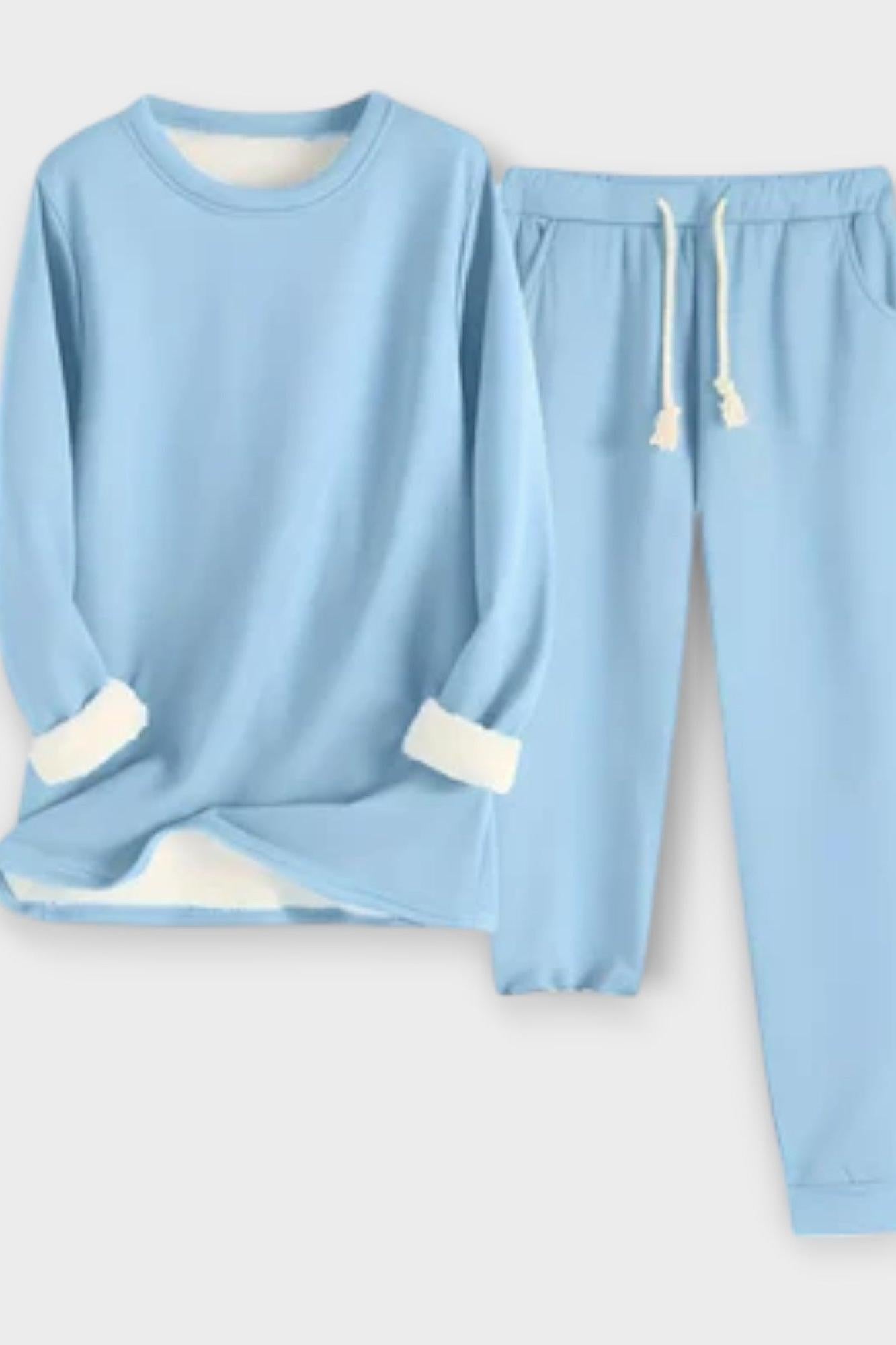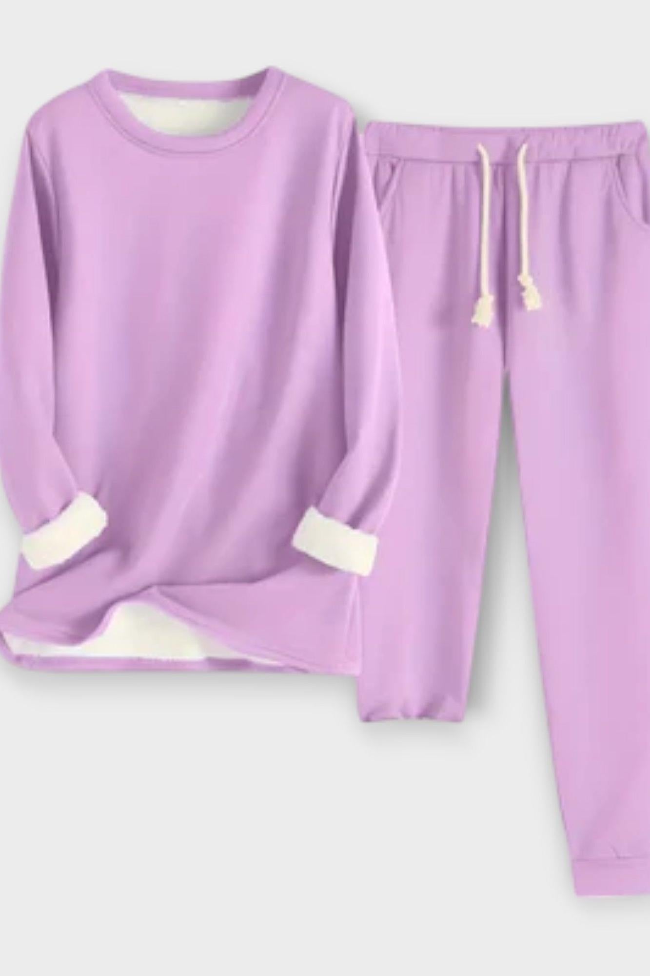Mathilde | Langærmet sæt forener tidløs elegance med maksimal komfort. Sættet er omhyggeligt fremstillet i premium fleece, hvis bløde tekstur føles eksklusiv mod huden og giver fremragende åndbarhed uden at overophede. Hver søm og detalje vidner om håndværkets omtanke og materialernes kvalitet, hvilket giver en fremtoning, der passer lige så godt til afslappet hjemmeklima som til byens milde hverdagstile. Den enkle, klassiske silhuet sikrer en tidløs appel og lang sæsonværdi, mens form- og farvebestandigheden bevarer pasform og nuance gennem mange vaske. Desuden lover sættet nem pleje og vedvarende blødhed, så komforten følger dig år efter år. Med begrænset tilgængelighed tilføjes en dimension af prestige, der appellerer til den kvalitetsbevidste køber og giver Mathilde en naturlig samlerappel uden at gå på kompromis med funktionalitet.
