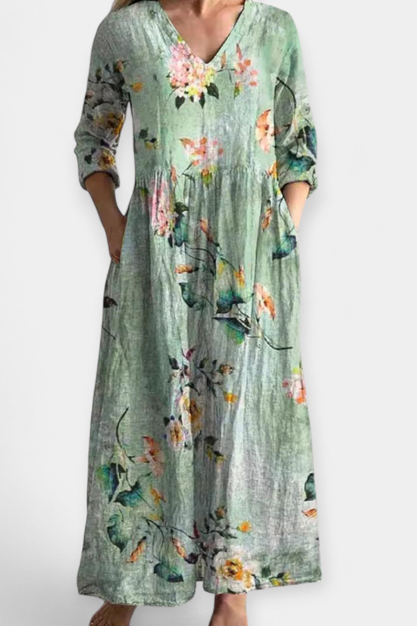 Nora | Let blomsterkjole er en let, feminin sommerkjole designet til solrige dage og særlige lejligheder. Den flatterende V-hals og det afslappede snit giver komfort fra morgen til aften, mens det bløde, åndbare stof og den gennemtænkte oprindelse bag materialer og leverandører sikrer høj kvalitet. Det romantiske blomsterprint tilfører tidløs elegance, og hver søm vidner om omtanke og en arv af håndværk, der afspejler kvalitetsbevidst design. Begrænset oplag og nøje udvalgte detaljer giver kjolen en eksklusiv karakter med lang levetid og samlerappel. Den elegante balance mellem lethed og holdbarhed gør Nora til et alsidigt valg, der følger dig fra dag til aften og giver stilværdi, der varer sæsoner.
