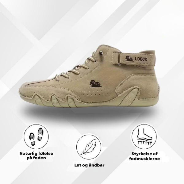 ✓ Åndbare materialer – reducerer belastning og irritation, ideel ved neuropati og gigt ✓ Naturlig gang – styrker fod og ben, perfekt ved plantar fasciitis ✓ Øget blodcirkulation – mindsker træthed og hjælper mod følelsesløshed ✓ Bred tåboks – giver fleksibilitet og naturlig spredning af tæerne ✓ Alsidig – ideel til gåture, arbejde og hverdagsbrug